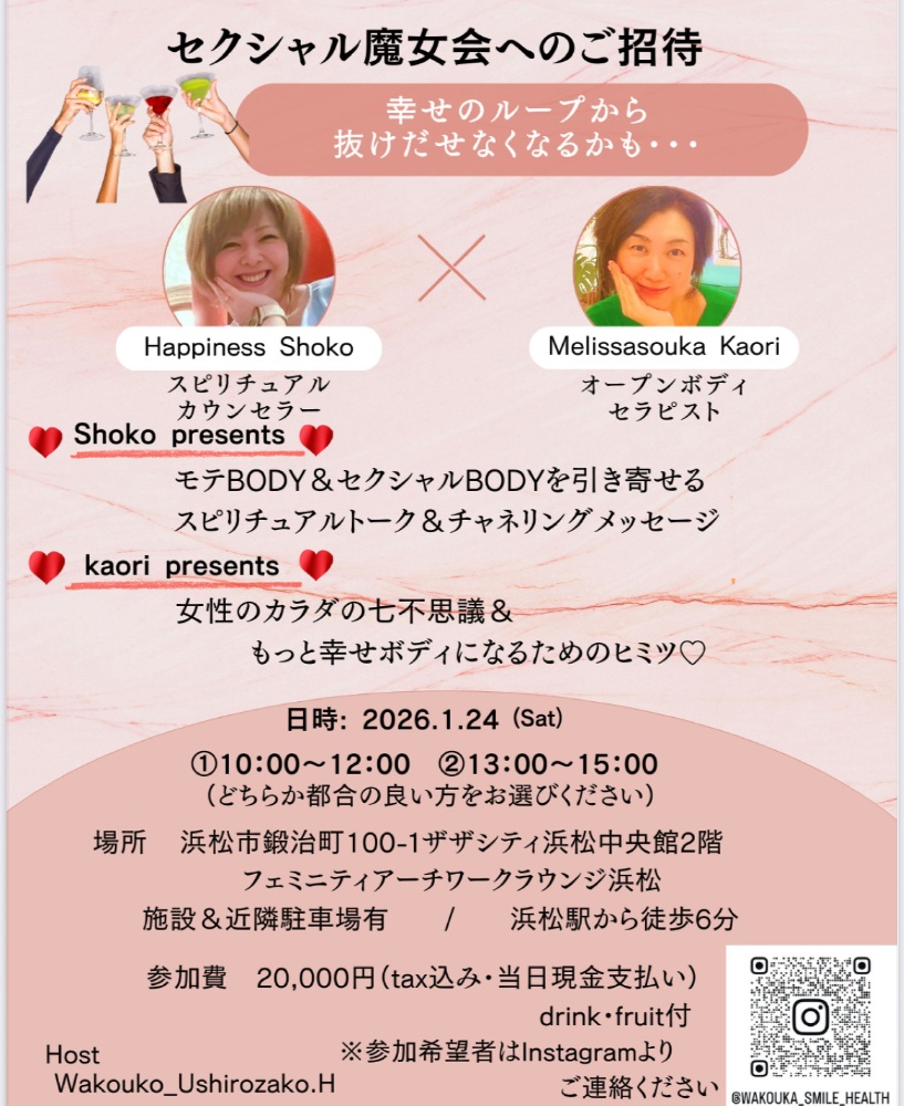 セクシャル魔女会と題して女性特有の健康課題をテーマにフェムケアに携わるmelissaカオリさんとワタクシHappiness shokoのスピリチュアルなセクシートークを織り交ぜなら…